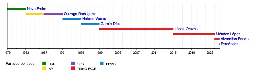 Está presidido por el alcalde de Lugo, que desde 1979 es elegido democráticamente por sufragio universal. Actualmente ocupa dicho cargo Miguel Fernández, del PSOE.[2]