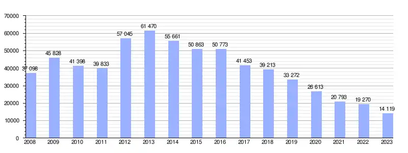 | Gráfica de evolución de la deuda viva del Ayuntamiento entre 2008 y 2023 |