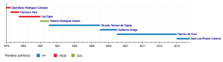 | 2019-2023 | José Luis Álvarez Ustarroz | Partido Popular (PP) |
