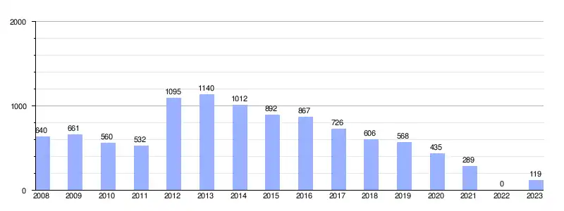 | Gráfica de evolución de la deuda viva del Ayuntamiento entre 2008 y 2023 |