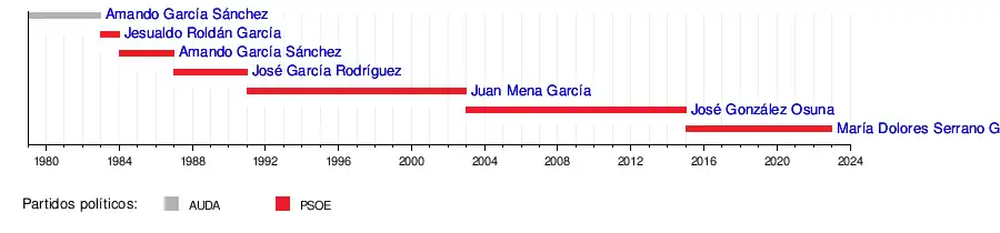 | 2019-2023 | María Dolores Serrano Gutiérrez | Partido Socialista Obrero Español (PSOE) |