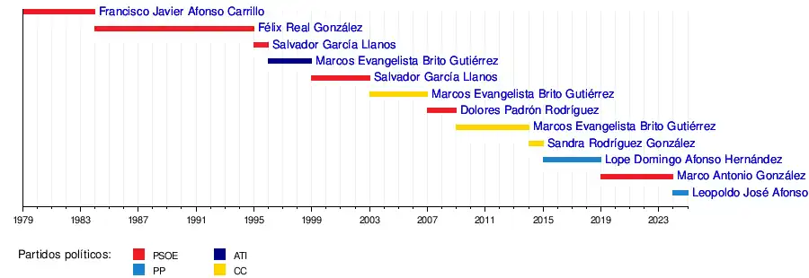 | 1999-2003 | Salvador García Llanos | Partido Socialista Obrero Español (PSOE) |