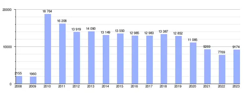 | Gráfica de evolución de la deuda viva del Ayuntamiento entre 2008 y 2023 |
