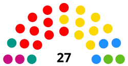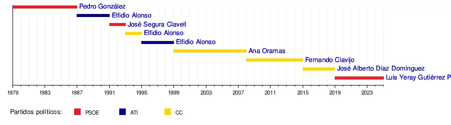 Gobierno 2023-2027 (10) 10 PSOE Oposición (17) 8 CC 3 PP 2 Vox 2 Podemos 2 DVC | |