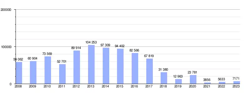 | Gráfica de evolución de la deuda viva del Ayuntamiento entre 2008 y 2023 |