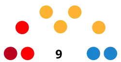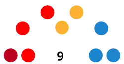 | Distribución del Ayuntamiento tras las elecciones municipales de 2019[7][8] | |||||