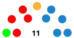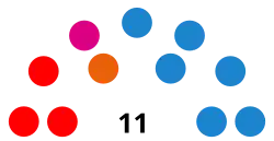 | Distribución del Ayuntamiento tras las Elecciones municipales de 2011[11][12] | |||||
