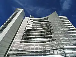 - Una torre de secretaría de 18 pisos alberga varias oficinas de la ciudad.[3] Con 87 m, fue el edificio más alto de San José hasta que la Torre 88 lo superó por 0,3 m en 2008. La torre tiene una huella delgada de 21 x 78 m. La oficina del alcalde está en el último piso.