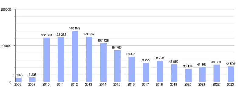 | Gráfica de evolución de la deuda viva del Ayuntamiento entre 2008 y 2023 |