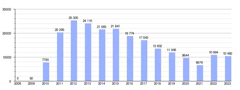 | Gráfica de evolución de la deuda viva del Ayuntamiento entre 2008 y 2023 |