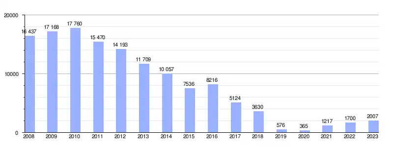 | Gráfica de evolución de la deuda viva del Ayuntamiento entre 2008 y 2023 |