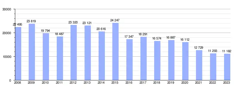 | Gráfica de evolución de la deuda viva del Ayuntamiento entre 2008 y 2023 |