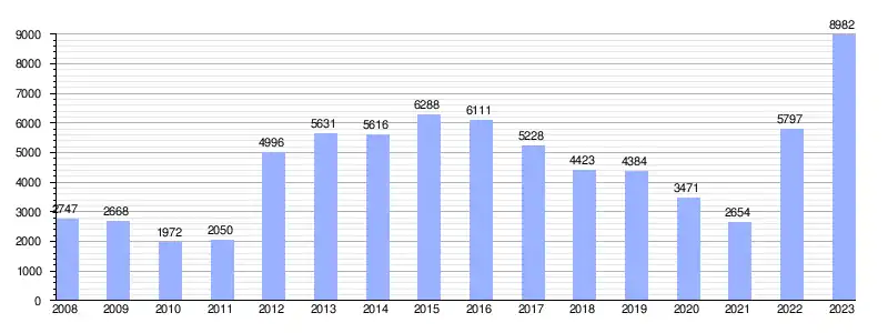| Gráfica de evolución de la deuda viva del Ayuntamiento entre 2008 y 2023 |
