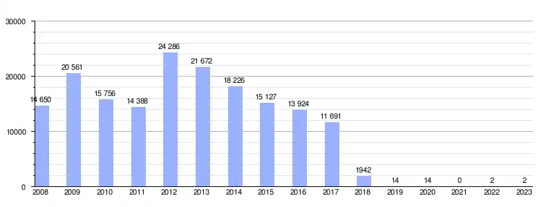 | Gráfica de evolución de la deuda viva del Ayuntamiento entre 2008 y 2023 |
