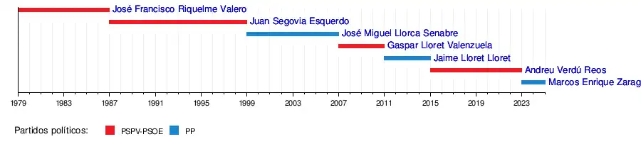 | 1979-1983 | José Francisco Riquelme Valero | Partit Socialista del País Valencià (PSPV-PSOE) |