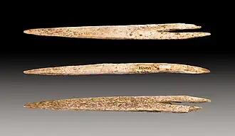 - Auriñaciense: azagayas de base hendida y azagayas losángicas;