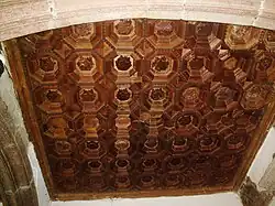 El artesonado en las esquinas del claustro bajo del exconvento.