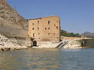 ![]() El Azud de Cherta antes de construir la central hidroeléctrica. | ||
