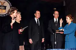 Franklin siendo juramentada como secretaria de Comercio por la jueza asociada de la Corte Suprema, Sandra Day O'Connor.