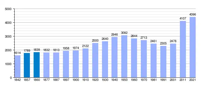 | Gráfica de evolución demográfica de Bárcena de Cicero[6] entre 1842 y 2021 |