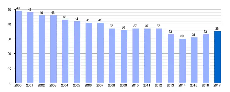| Gráfica de evolución demográfica de Bárcena d Pienza entre 2000 y 2017 |