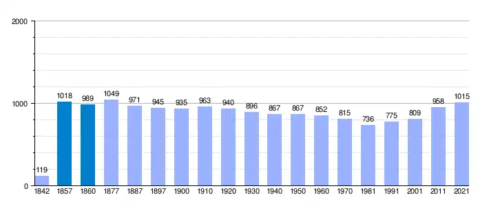Población de derecho según los censos de población del INE Población de hecho según los censos de población del INEEntre el censo de 1857 y el anterior, crece el término del municipio porque incorpora a Calabuig y Orriols[4] |