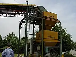 - Báscula para pesar graneles: También llamada Bulk Weighing (pesaje en continuo por ciclos), son básculas intercaladas en cintas transportadoras de materiales a granel. El sistema consta de dos tolvas en línea vertical. La superior tiene por objeto almacenar material mientras se produce el pesado del contenido de la tolva inferior. Una vez efectuado el mismo, el granel es liberado a la cinta transportadora y, cuando la tolva se vacía, vuelve a llenarse con el material acumulado en la tolva superior.