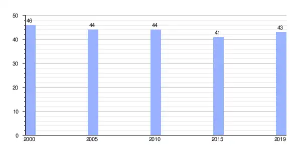 | Gráfica de evolución demográfica de Bóveda (parroquia) entre 2000 y 2019 |