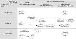 Para recuperar efectivamente los documentos relevantes por estrategias de recuperación de información, los documentos son transformados en una representación lógica de los mismos. Cada estrategia de recuperación incorpora un modelo específico para sus propósitos de representación de los documentos. La figura a la derecha ilustra la relación entre algunos de los modelos más comunes. Los modelos están categorizados de acuerdo a dos dimensiones: la base matemática y las propiedades de los modelos.