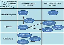 - Modelos basados en Teoría de Conjuntos: Los documentos se representan como un conjunto de palabras o frases. Los modelos más comunes son:
