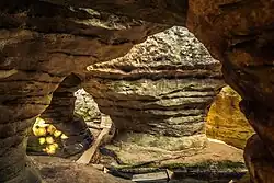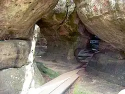 La roca llamada El BarcoUna ruta turística de varios cientos de metros de longitud discurre entre diversas formaciones rocosas como mazas, setas o pilares.[1] Algunas de las rocas tienen sus propios nombres, como Stołowy Głaz, Tunel, Kuchnia o Kurza Stopka.[1] En los lugares más estrechos, los turistas tienen que meterse por grietas en la roca de varias decenas de centímetros.[1]