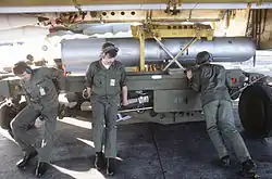 - ↑ MARK 28 THERMONUCLEAR BOMB Archivado el 4 de abril de 2013 en Wayback Machine. // National Museum of the USAF, 8/16/2012: "The artifacts on exhibit are BDU-16/E training variants of the Mk-28 and are displayed on an MHU-7/M Bomb Lift Trailer... return to the Cold War Gallery."