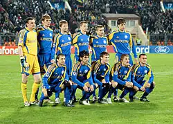 Equipo del BATE antes de un partido de Liga de Campeones ante el Zenit en 2008.