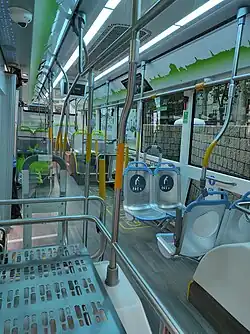 El interior de los autobuses también van equipados con pantallas de información, donde se informa de las paradas que va realizando el autobús, además de visualizar las campañas publicitarias del ayuntamiento de Vitoria e informar a las personas usuarias acerca del tiempo que realizará en los próximos días en la capital alavesa, tal como se hace en las pantallas de información del resto de autobuses de la compañía municipal. También existe una pantalla extra ubicada encima de las plazas reservadas para sillas de ruedas y carritos de bebé, que informa de las paradas que realizara el vehículo. Irizar ha equipado a los vehículos con al menos 3 plazas para sillas de rueda y carritos de bebé, tal como exige el ayuntamiento desde 2017 cuando llegaron los primeros autobuses de color verde y blanco; en el caso de los autobuses BEi articulados también contarán con un portamaletas similar a los autobuses articulados adquiridos en 2017.