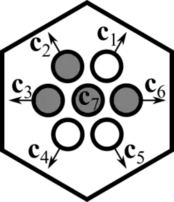 Como todo modelo de autómatas celulares, un modelo BIO-LGCA está definido por una red , un espacio de estados , una vecindad , y una regla .[3]