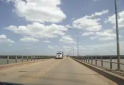 El Puente sobre el Río Tacutu conecta los territorios brasileño y guyanés. Después de este puente, en el lado exterior, hay un viaducto de conversión que permite a los automovilistas cambiar de dirección, ya sea de derecha a izquierda (Brasil – Guyana) o, de izquierda a derecha (Guyana – Brasil ),[3] ya que ese país utiliza la mano inglesa.