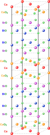 - ↑ R. J. Cava (1988). «Structure and physical properties of single crystals of the 84-K superconductor Bi2.2Sr2Ca0.8Cu2O8+δ». Physical Review B 38 (1): 893-896. Bibcode:1988PhRvB..38..893S. PMID 9945287. doi:10.1103/PhysRevB.38.893.
