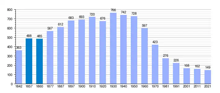 Gráfica de evolución demográfica de Bañón[3]​ entre 1842 y 2021