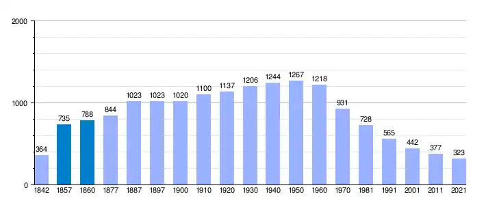 | Gráfica de evolución demográfica de Baños de Valdearados[4] entre 1842 y 2021 |