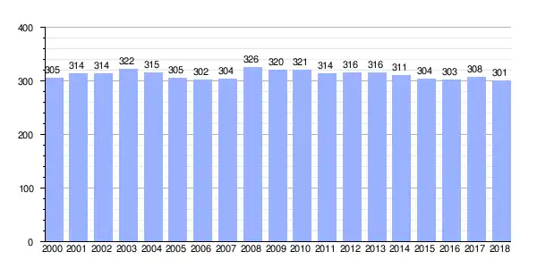 | Gráfica de evolución demográfica de Babío (parroquia) entre 2000 y 2018 |