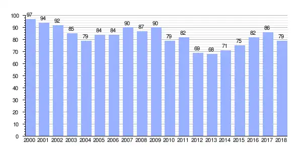 | Gráfica de evolución demográfica de Babenzo entre 2000 y 2018 |