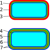 Algunas especies presentan incluso formas tetraédricas o cúbicas.[54] Esta amplia variedad de formas es determinada en última instancia por la composición de la pared celular y el citoesqueleto, siendo de vital importancia, ya que puede influir en la capacidad de la bacteria para adquirir nutrientes, unirse a superficies o moverse en presencia de estímulos.[55][56]