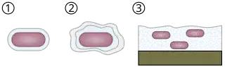 Las bacterias presentan la capacidad de anclarse a determinadas superficies y formar un agregado celular en forma de capa denominado biopelícula o biofilme, los cuales pueden tener un grosor que va desde unos pocos micrómetros hasta medio metro. Estas biopelículas pueden congregar diversas especies bacterianas, además de protistas y arqueas, y se caracterizan por formar un conglomerado de células y componentes extracelulares, alcanzando así un nivel mayor de organización o estructura secundaria denominada microcolonia, a través de la cual existen multitud de canales que facilitan la difusión de nutrientes.[58][59] En ambientes naturales tales como el suelo o la superficie de las plantas, la mayor parte de las bacterias se encuentran ancladas a las superficies en forma de biopelículas.[60] Dichas biopelículas deben ser tenidas en cuenta en las infecciones bacterianas crónicas y en los implantes médicos, ya que las bacterias que forman estas estructuras son mucho más difíciles de erradicar que las bacterias individuales.[61]