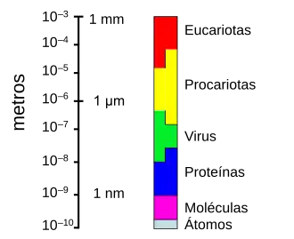 Las bacterias son organismos relativamente sencillos. Sus dimensiones son muy reducidas, unos 2 μm de ancho por 7-8 μm de longitud en la forma cilíndrica (bacilo) de tamaño medio; aunque son muy frecuentes las especies de 0,5 a 1,5 μm.