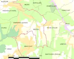 Badevel es una población y comuna francesa, en la región de Franco Condado, departamento de Doubs, en el distrito de Montbéliard y cantón de Étupes.