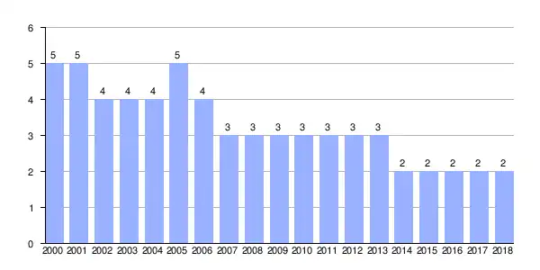 | Gráfica de evolución demográfica de Bafadoira entre 2000 y 2018 |