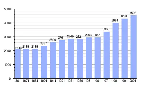 | Gráfica de evolución demográfica de Bagnolo Cremasco entre 1861 y 2001 |