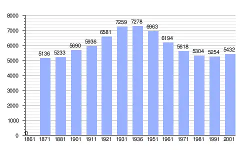 | Gráfica de evolución demográfica de Bagnolo San Vito entre 1861 y 2001 |
