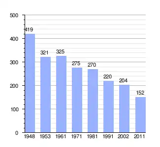 | Gráfica de evolución demográfica de Bagremovo entre 1948 y 2011 |