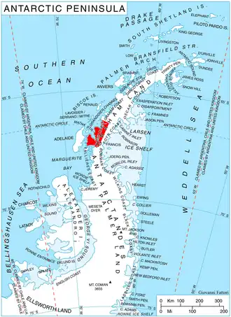 | Coordenadas | 66°30′00″S 65°55′00″O / -66.5, -65.9167 | |